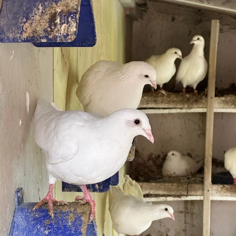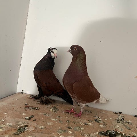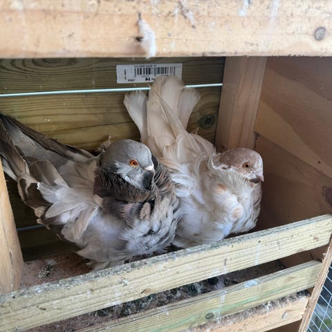 Det finns några duvor till salu Afganska och tre Niski hane 250 kr per stycken.