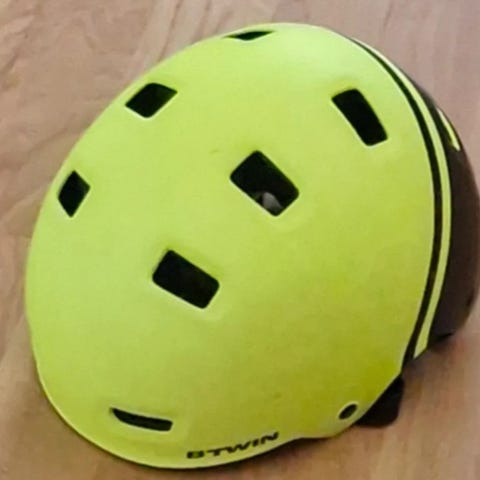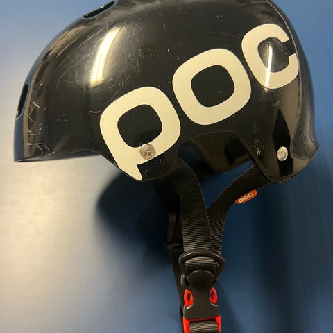 POC cykelhjälm i gul färg. Storlek cirka 51/54 cm omkrets, lämplig för huvudmått runt denna storlek. Hjälmen har flera ventilationshål och justerbart hakband med spänne. Passar för cykling och liknande aktiviteter där hjälm rekommenderas.