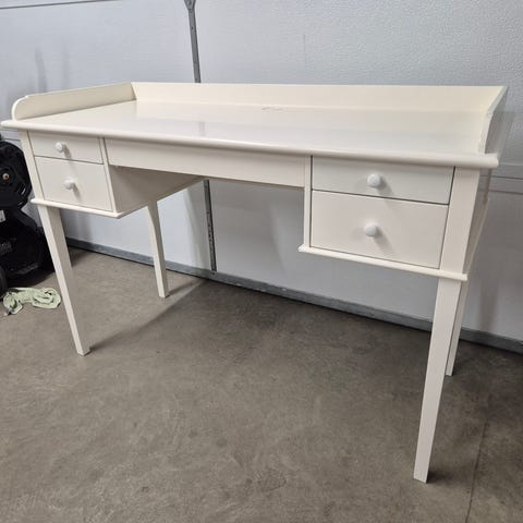 Säljer ett charmigt och stabilt barnskrivbord i massivt trä. Perfekt för pyssel, läxläsning eller kreativa stunder. Klassisk design med praktisk överdel med hyllor och anslagstavla.