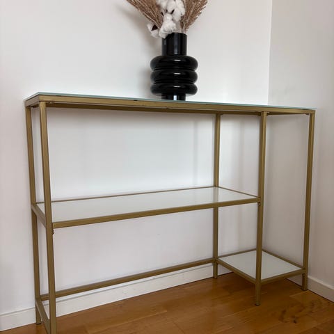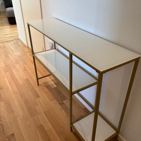 Helt ren och som ny avlastningsbord mycket fint skick där man kan lägga olika vaser på vi har köpt den men den passar inte hos oss därför säljer jag den.