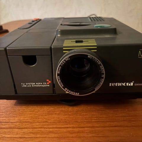 Agfa Pilot fjärrkontroll för diaprojektorer Agfa Diamix och Agfa Select. Fjärrkontrollen är trådlös och har knappar för framåt- och bakåtbläddring. Mottagaren ansluts till diaprojektorn. Tillverkad i Tyskland.