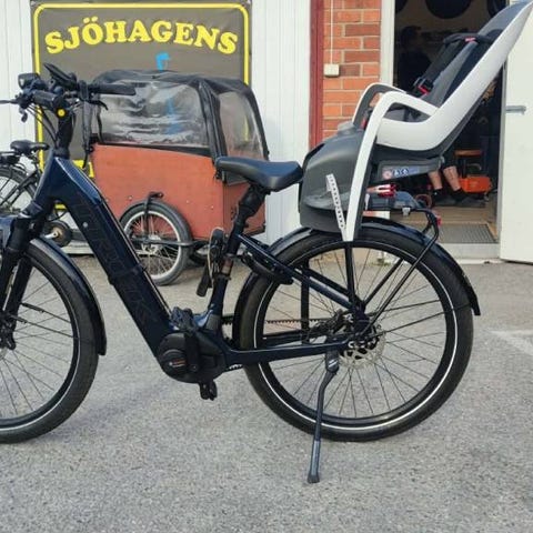 Cykeln har steglös växling, både i rörelse och stillastående, samt kraftfulla hydrauliska skivbromsar. Den är dessutom utrustad med tillbehör som belysning, lås och en praktisk MIK HD-pakethållare där du enkelt kan fästa tillbehör med MIK-system.