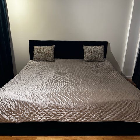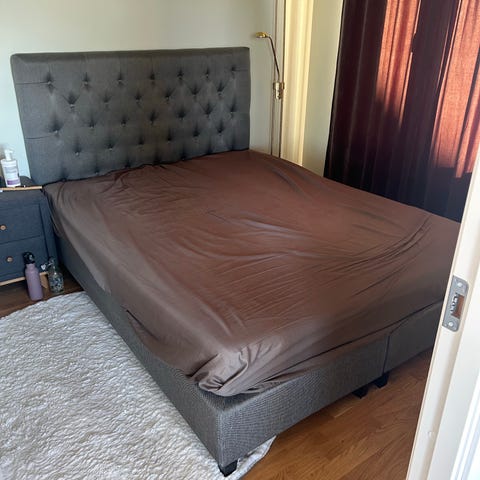 Skön och fin säng med hög gavel. Mjuk madrass.