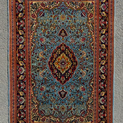 En vacker gammal handknuten persisk matta med måtten 101x152 cm. Mattan har Heriz motiv/mönster men själva mattan är knuten i staden Bidjar. Mattor från Bidjar är kända för sin extrema uthållighet och knuttäthet. Detta är ett hantverk och mattan är i gott använt skick. Endast naturligt åldersrelaterat slitage. Mattan är utrustad med skinnförstärkta sidor.