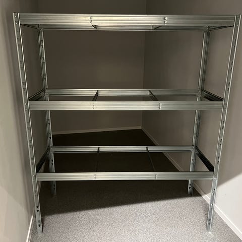 H 250cm x B=1mx D=50cm = finns 30st varje hylla har 5 st. Hyllplan pris är =450kr per st, Pris gäller om köper 5 eller mer.
