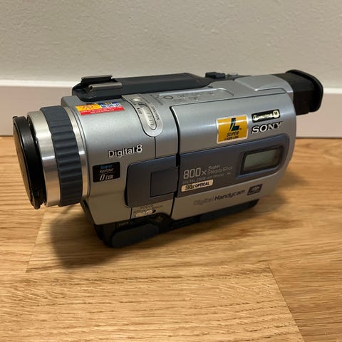DCR-TRV355E Digital8 mycket fint skick, Mycket Sparsamt använd, kan också hantera alla typer av 8mm, som hi8 video8, 8mm band, funkar FELFRITT . Denna kamera kan även pelar upp Digital8 (D8) band , jättebra utrustningar för att Digitalisera dina gamla video via DV /firewire/i-Link, har S-Video och AV utgångar också . Det innebär att du kan koppla kamera direkt till dator med hjälp av firewire /dv kabel via DV /FIREWIRE utgång på kamera. Du kan även spela upp på tv. Man kan också föra över video med hjälp av Easycap kabel via AV /RCA utgångar.