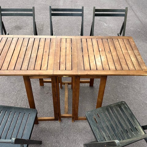 Ett fint grått utomhus bord och stolar. De är i fint skick. Perfekt för uteplatsen. Lätt att fälla ihop.