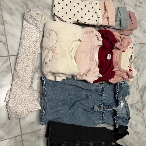 2 koftor. 2 kjolar, 4 nederdelar (byxor leggings 1 Långärmad tröja, 4 linnen, 1 tshirt