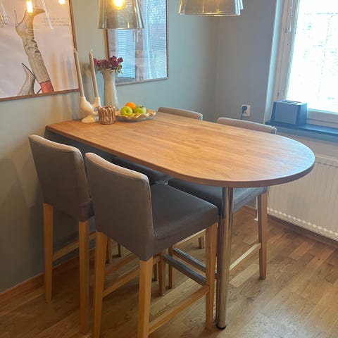 Barbord med 4 st INGOLF barstolar från IKEA. (Nypris barstol: 895kr/st)