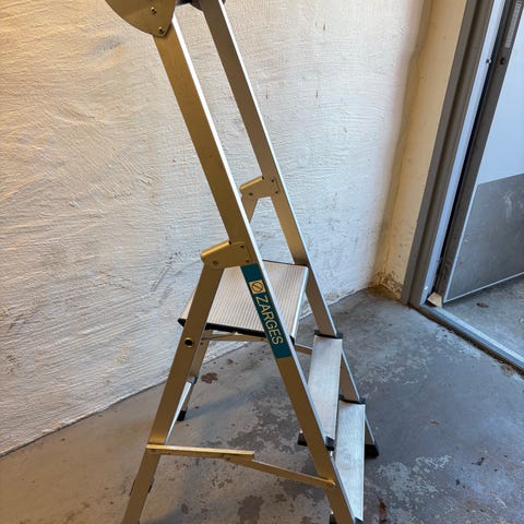 Hopfällbar stege i aluminium med tre steg. Stegen har breda fotsteg med räfflad yta för bättre grepp och stabilitet. Konstruktionen är kompakt och kan fällas ihop för enkel förvaring och transport. Lämplig för användning inomhus, exempelvis i förråd, garage eller bostad vid arbete på lägre höjd.
