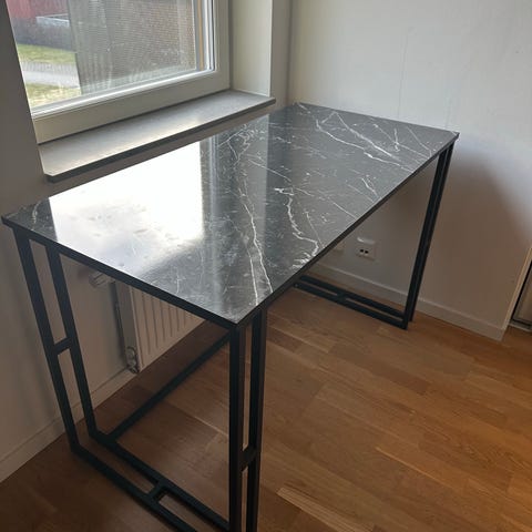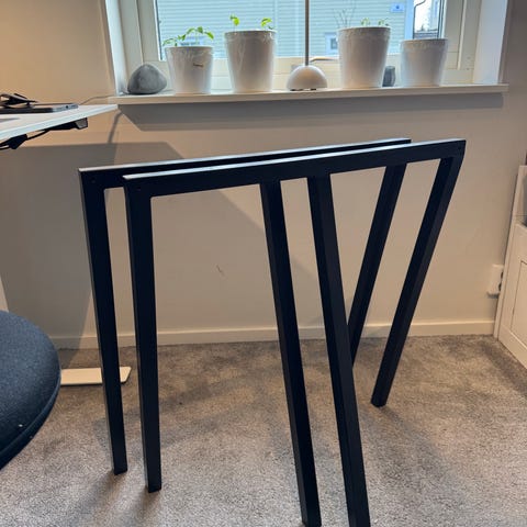 Bordsben 90 cm höga vilket betyder att du bara lägger på en skiva och du har ett bord. Om du vill ha en skiva så kan du få en 🥰