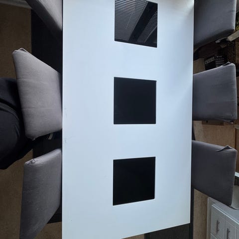Svartbrunt matbord från Mio säljes för 2600kr. Med inläggsskiva är måtten 170×120. Utan inlägg skiva är bordet 120 i diameter. Mina katter har tyvärr rivit på stolsdynorna. Medföljer gratis om du vill.