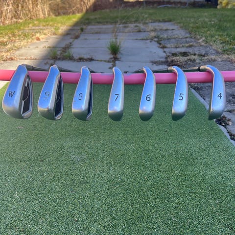 Ett järnset 4-pw, i bra skick. Är du stark och har en kraftfull sving? Kolla hit! Fina ping monterade på Dynamic Gold x100 skaft. X-stiff! Fina jumbogrepp. Redo att skickas omgående eller om du vill klämma och känna, så är du välkommen ut till Österåker.