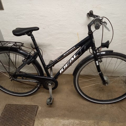7 växlar, hjulstorlek 26 tum, handbroms och fotbroms, stöd, lampor, pakethållare, lås med 2 nycklar, liten korg på styret, stänkskärmar, reflexer, ringklocka, liten prick trasig på sadeln (se bild)
