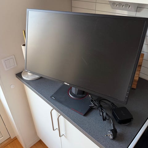 Asus TUF Gaming VG3A bildskärm med 24-tums skärmstorlek. Skärmen har en matt svart design och är avsedd för stationär användning, exempelvis spel, arbete eller allmänt datorbruk. På baksidan finns anslutningar som bland annat HDMI och DisplayPort (enligt märkning på chassit). Modellen levereras med originalstativ och har VESA-fästhål enligt märkningen på baksidan, vilket gör den möjlig att montera på vägg- eller bordsfäste som stödjer standarden. Skärmen drivs via extern strömkabel/adapter enligt etiketten på baksidan. För exakta tekniska data som upplösning, uppdateringsfrekvens och paneltyp hänvisas till Asus officiella specifikationer för TUF Gaming VG3A-serien. Alla tillbehören finns inkl kartong. Mvh Douglas