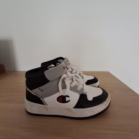 Champion sneakers för barn unisex i storlek 27.5 Skorna är vita med snörning och kardborreband upptill för extra stadga runt fotleden. Ovandel, foder och sula är i syntetmaterial enligt typisk konstruktion för denna typ av barnskor. Yttersulan har mönstrad undersida för bättre grepp. Passar till vardagsbruk och fritidsaktiviteter för barn som använder storlek 27.5.