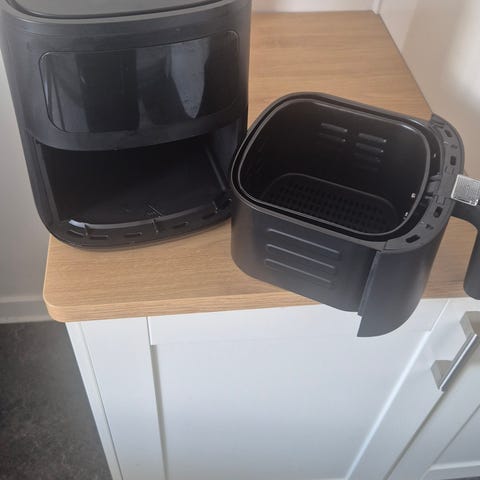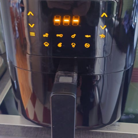 Philips airfryer i svart utförande. Utrustad med digital panel med flera förinställda program och vred för inställning av tid och temperatur. Korgen har non-stick-yta och uttagbar insats för varmluftstillagning av mat. Passar för tillagning av exempelvis potatis, grönsaker, kött och frysta produkter med cirkulerande varmluft istället för traditionell fritering med olja.