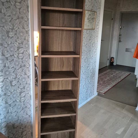 Snygg och praktisk roterande bokhylla i honungsfärgat trä. Har 5 hyllplan och roterar 360°, vilket gör det enkelt att komma åt böcker från alla håll. Passar perfekt i ett hörn.