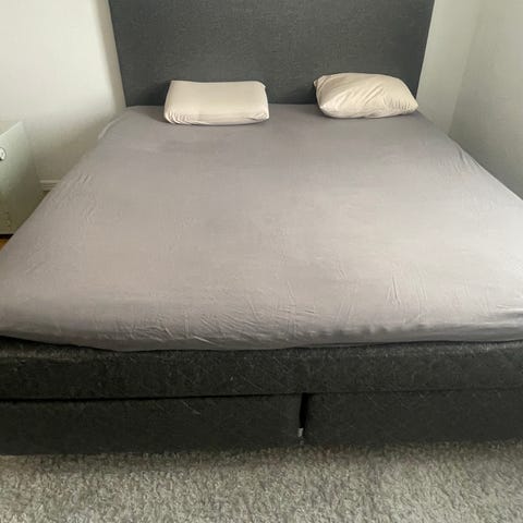 &Tradition säng med sänggavel i grått utförande. Sängen har en rak, enkel gavel och står på ben som ger utrymme under sängen. Passar som dubbelsäng i sovrum. Madrass och bäddtextilier på bilden kan ingå eller avvika beroende på överenskommelse.
