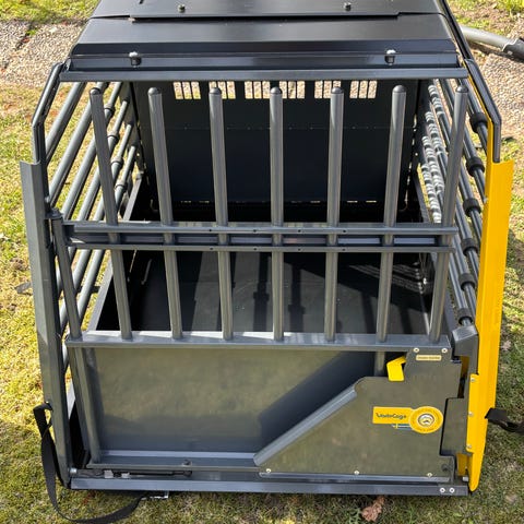 Hundtransport med tre boxar. Öppningsbart tak med inbyggda fack. Reglagepanel till belysning och fläkt. Inbyggt batteri. Rymliga boxar i litet format.