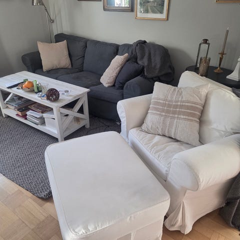 Soffan har fläckar så sitt och ryggdyna kan behöva tvättas