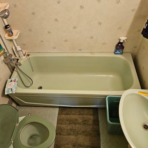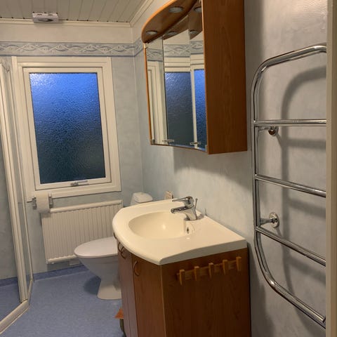 Allt är något slitet men kan fungera för tvätt och dusch i verkstad eller maskinhall.