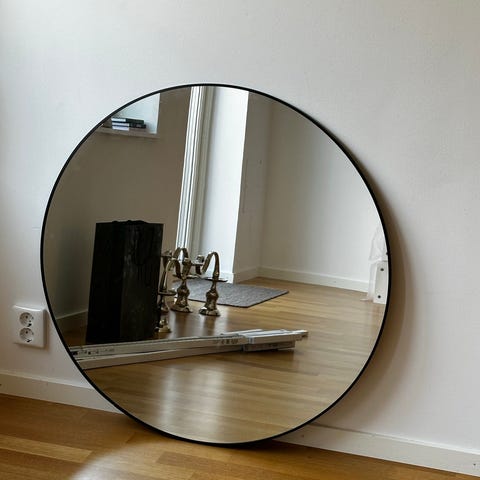 Säljer en rund spegel utan ram, köpt från Åhléns outlet. Väldigt fint skick.
