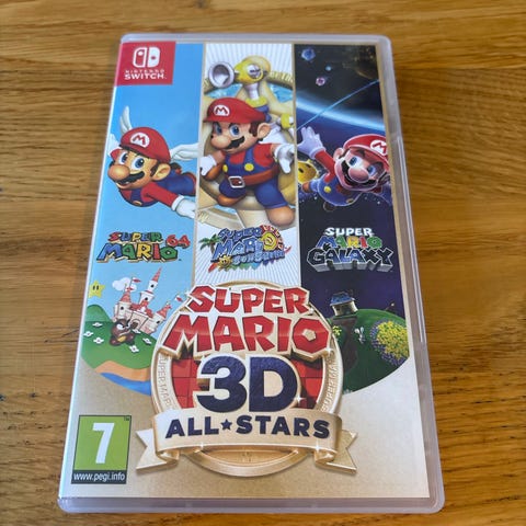 Nintendo Super Mario 3D All-Stars spel för Nintendo Switch. Samlingsutgåva med tre 3D-plattformsspel i Mario-serien: Super Mario 64, Super Mario Sunshine och Super Mario Galaxy. Levereras på spelkassett i plastfodral anpassat för Nintendo Switch. Rekommenderad åldersgräns enligt PEGI 7.