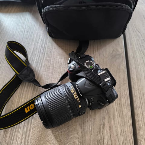Nikon D3200 systemkamera med utbytbara objektiv. Ett objektiv följer med, AF-P Nikkor 18-55 mm 1:3.5-5.6 G DX VR, samt laddare och överföringskabel. Antal exponeringar är runt 9100. Kameran ska klara ca 100 000 enligt tillverkaren, alltså är det ca 90% kapacitet kvar. Finns att hämta i östra Göteborg, kan skickas om mottagaren står för frakten.