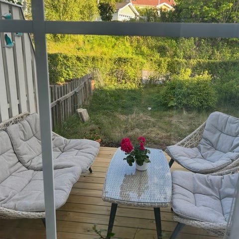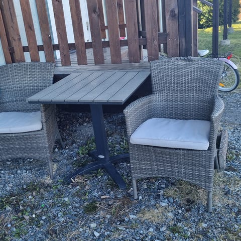 Trädgårdsgrupp soffa fåtöljer bord grå konstrotting