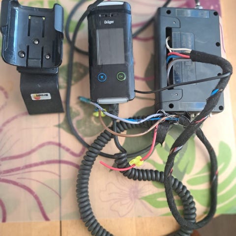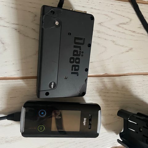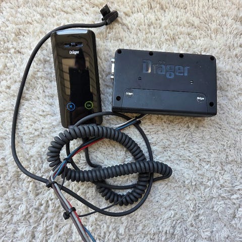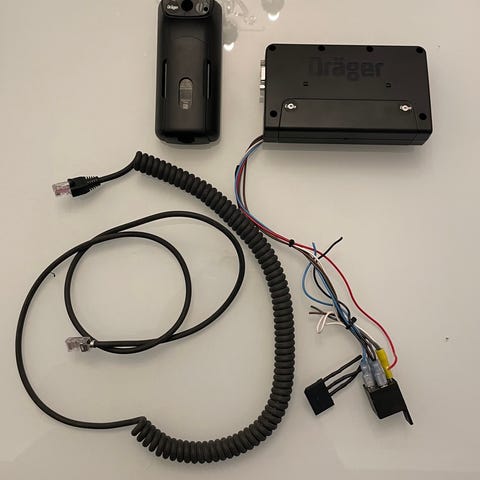 Dräger Interlock 7000 alkolås för fordon. Systemet består av handhållarenhet, styrenhet och anslutningskablar enligt bilderna. (Fungerar bra, kollad April 2026).