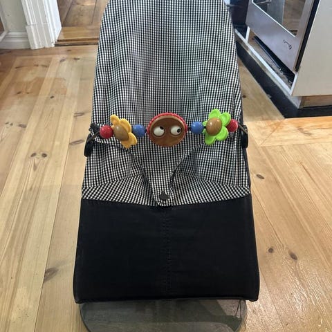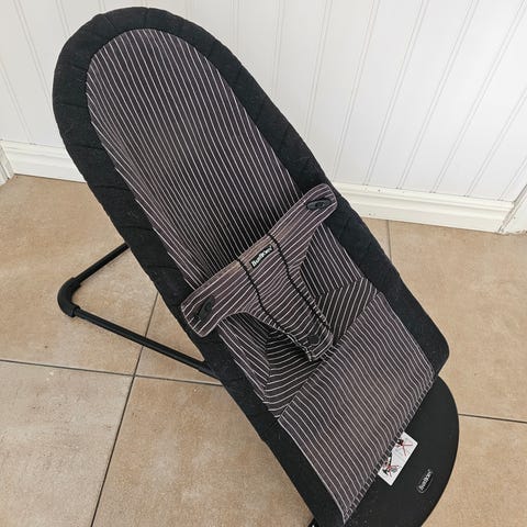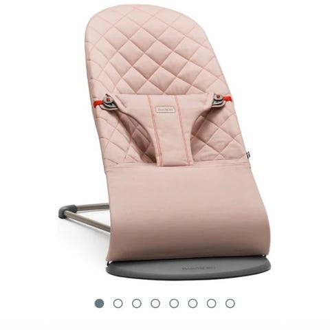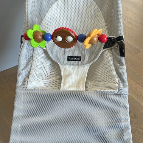 BabyBjörn Babysitter i modellen Bliss. Babysittern har quiltad textilklädsel med trepunktssele och justerbart ryggstöd. Stabil bas i hårdplast med tydliga säkerhetsmarkeringar.