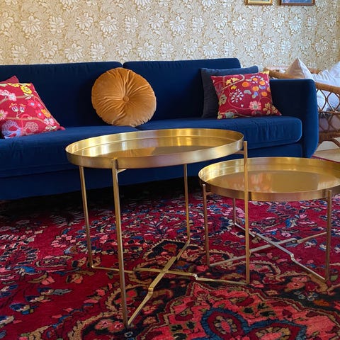 Soffbord med marmortryckglas, mässingunderrede.