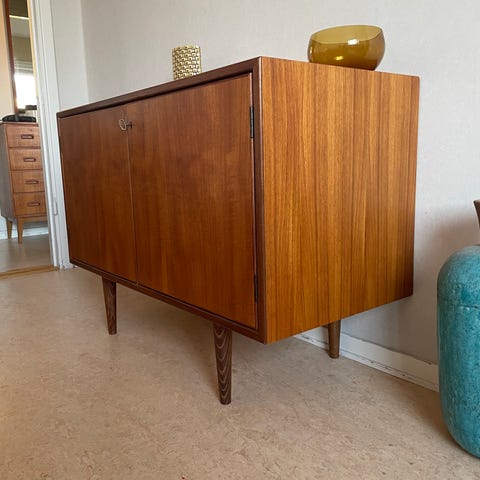 SIDEBOARD, 1950-tal, teak, 4st lådor, invändigt med ett hyllplan. Inköpt på Stockholms Auktionsverk för tre år sedan. Säljes på grund av flytt.