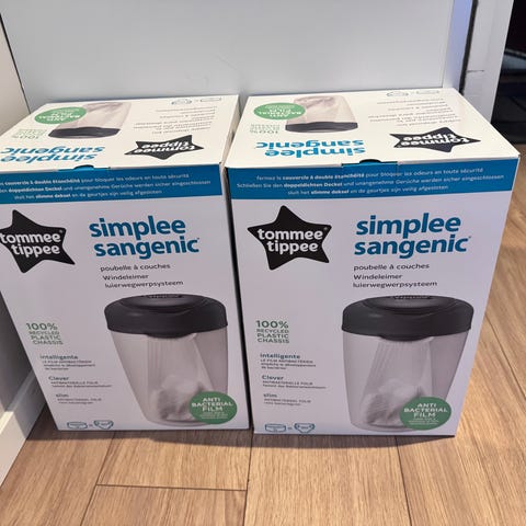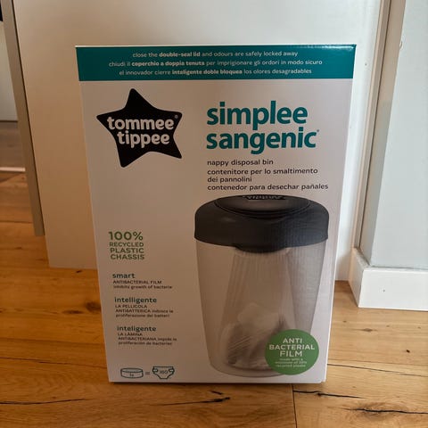 Tommee Tippee Simplee Sangenic är en hygiensisk och kompakt blöjhink som är enkel att använda och tar mycket lite plats. Hinken får lätt plats i badrummet, barnrummet eller i ett skåp om du vill förvara den lite mer diskret. Simplee Sangenic rymmer upp till 18 blöjor på en gång.