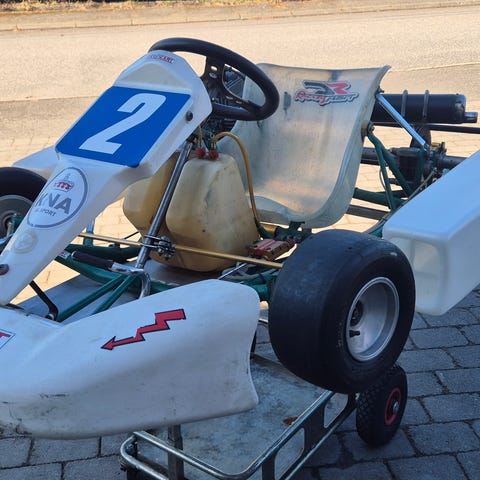 Säljer en rolig träningskart som funkar bra med tillhörande vagn och diverse däck, fälg, extra stol mm