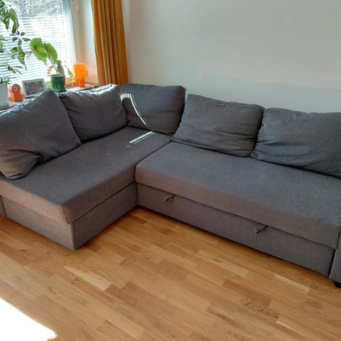 Mio Bellus Bäddsoffa, vändbar Divansoffa med förvaring i divanen samt en bädd som dras ut och soffan blir till en säng. Katt har funnits i hemmet och rökfri.