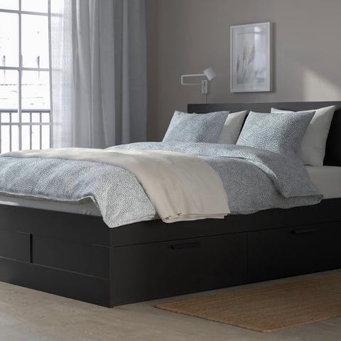 Stor och rymlig förvaring under hela sängen – perfekt för täcken, kuddar, säsongskläder m.m.