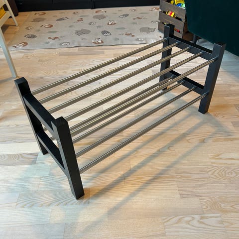 Skohylla tvåplan svart metall.TUSIG,IKEA.