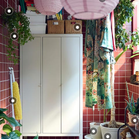Hatthylla och skohylla.