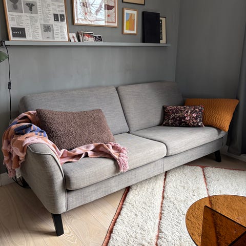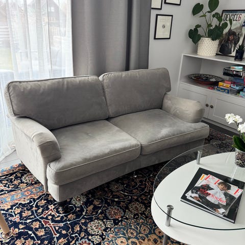 I have this green sofa 3 seater from Trademax for sale. It was bought in 2021. It is in good condition and the wooden block is recommended to keep under it to provide support from middle as well. I can give 2 wooden blocks which I got customised for this sofa. Can lower the price for a quick deal. It is a very trnding colour and looks great in the living room.