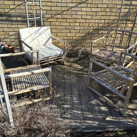 En bambusoffa i fint skick med vit dyna. Soffan har skyddats mot regn/snö och är i fint skick.
