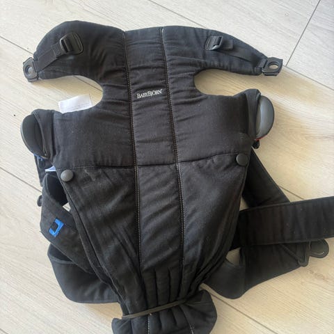 Den har justerbara remmar och spännen för att kunna anpassas efter bäraren och barnet.