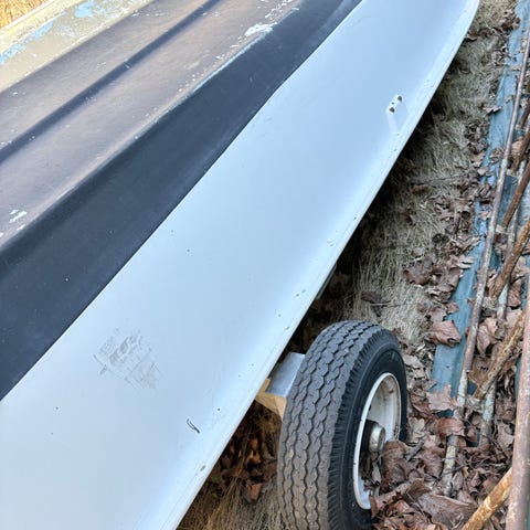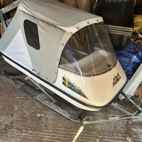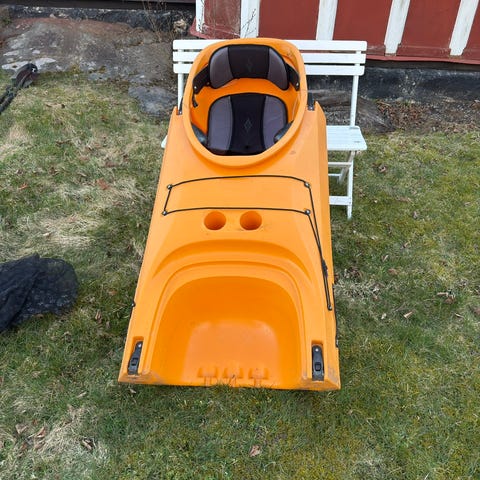 På en del av aktern/sidan syns en större skada i plasten som kan behöva repareras innan användning. Vi vet tyvärr inte hur mycket den har använts eller exakt hur väl den fungerar.