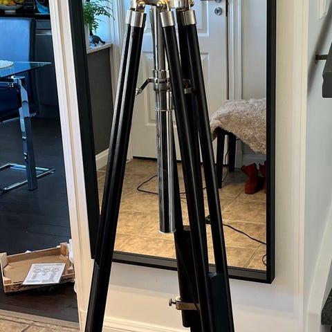 Säljer en robust golvlampa från Newport i industriell och marin stil. En gedigen lampa i högpolerat stål och svarta stabila träben. Ljuskällan har tyvärr slutat fungera men om man är händig går det att öppna upp och byta ljuskälla. Annars är lampan mer som en inredningsdetalj än som en källa till belysning. Just denna lampa har utgått men liknande kostar minst 30.000. Jag säljer denna för endast 1500 kr.