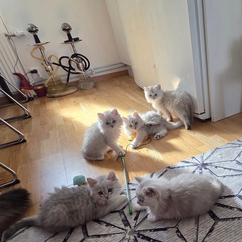 Efter meriterade föräldrar. Mamma är utställd till internationell champion. Pappa är utställd till champion och han är importerad från Kroatien. Båda föräldrarna är hälsotestade med veterinärintyg och de är fria från både HCM (hjärtsjukdom) och PKD (njursjukdom).