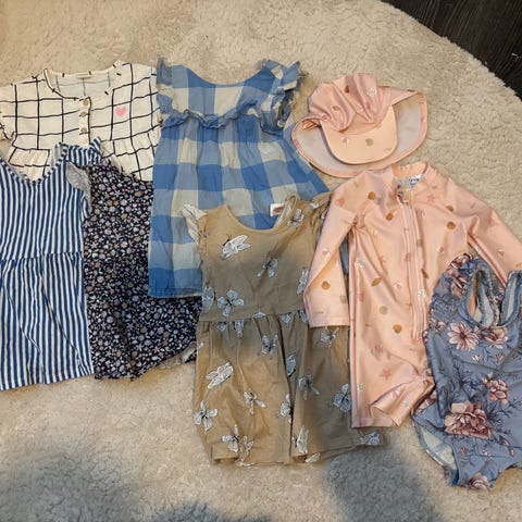 Söta hemsydda kläder från början av 1960-talet. Kullhättan lite färgfällning och blusen saknar knappar. I övrigt mycket fint skick och galgar medföljer