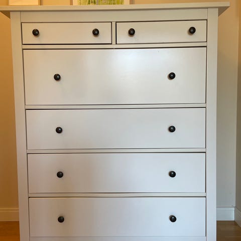 Vit byrå med flera lådor som ger gott om förvaring. Enkel och stilren design som passar i de flesta rum.