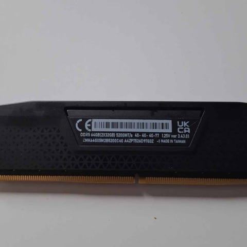 Corsair Vengeance RAM-minne av typen DDR5 i svart utförande. Passar stationära datorer med moderkort som stödjer DDR5-minne. Lämpligt för användning i exempelvis spel- och arbetsdatorer där DDR5-stöd finns. Exakta specifikationer som kapacitet och hastighet framgår av etiketten på modulen eller tillverkarens dokumentation.