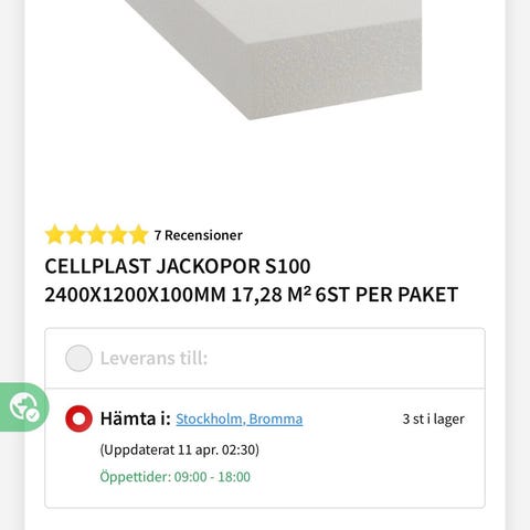 9 st. S100 EPS 240×120×10 lite väder bitna men fullt användbara vi ingutning mm ny pris st. 375:- x 9 = 3375 :-
